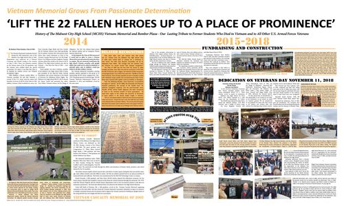 Historical information and photographs chronicling how a passionate and determined group of alumni wanted to "Lift the 22 fallen Bomber Heroes up to a place of prominence", planned and constructed this beautiful memorial between 2014 - 2018.